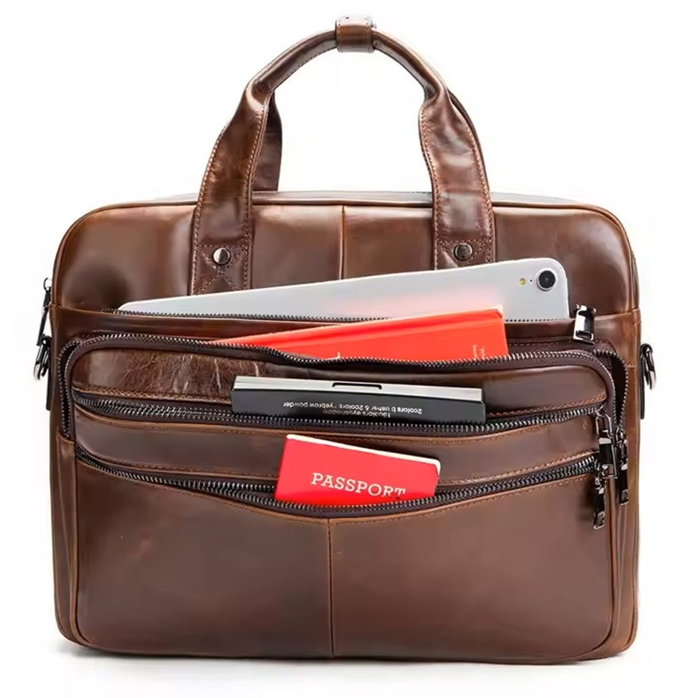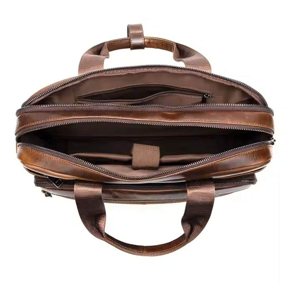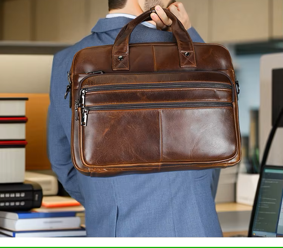 The C-Suite Genuine Leather Laptop Bag combines timeless elegance with practical functionality for the discerning professional. Crafted from premium genuine leather, this sophisticated accessory develops a distinguished patina over time, enhancing its character with each use. Thoughtfully designed with dedicated laptop compartments and organizational pockets, it seamlessly transitions from boardroom to travel. The refined construction and polished hardware project executive confidence, while the durable leather ensures years of reliable service. An investment piece that elevates your professional presence.